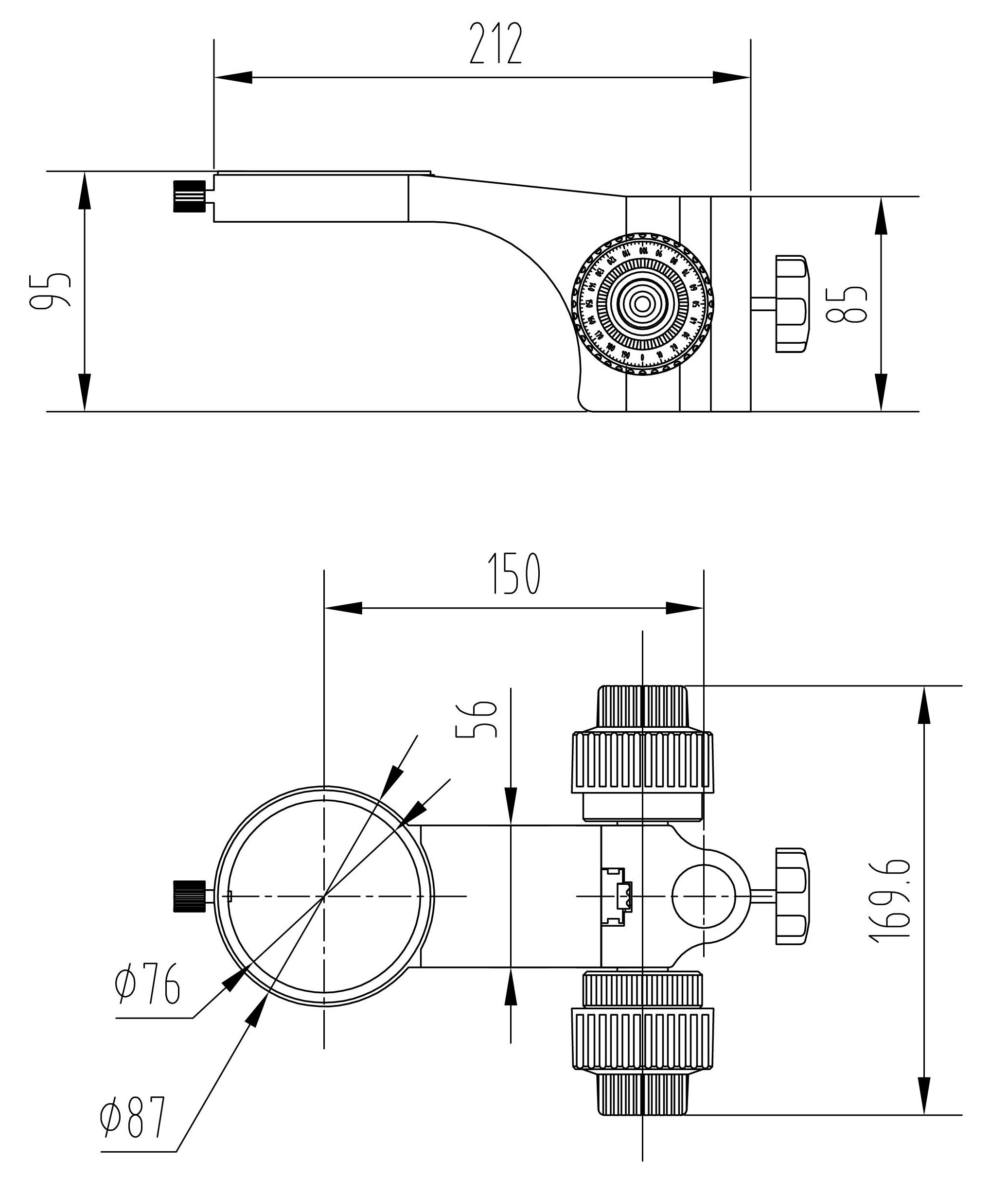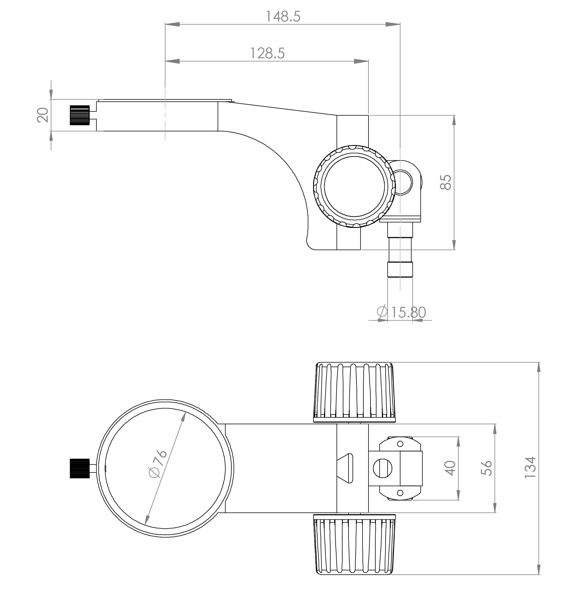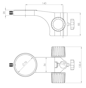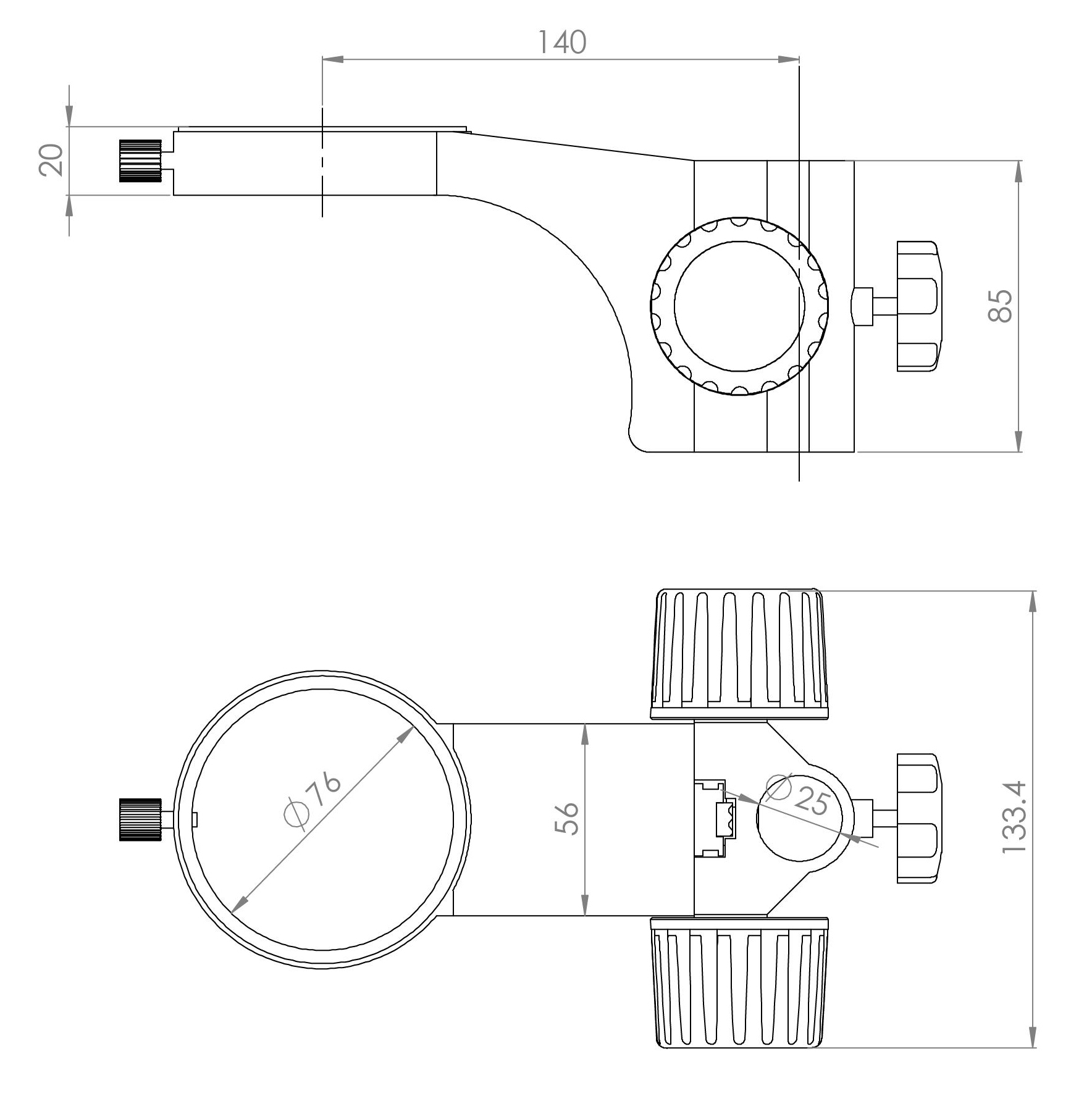 立柱安裝孔直徑Φ 25mm ,鏡體安裝孔直徑Φ 76mm ,